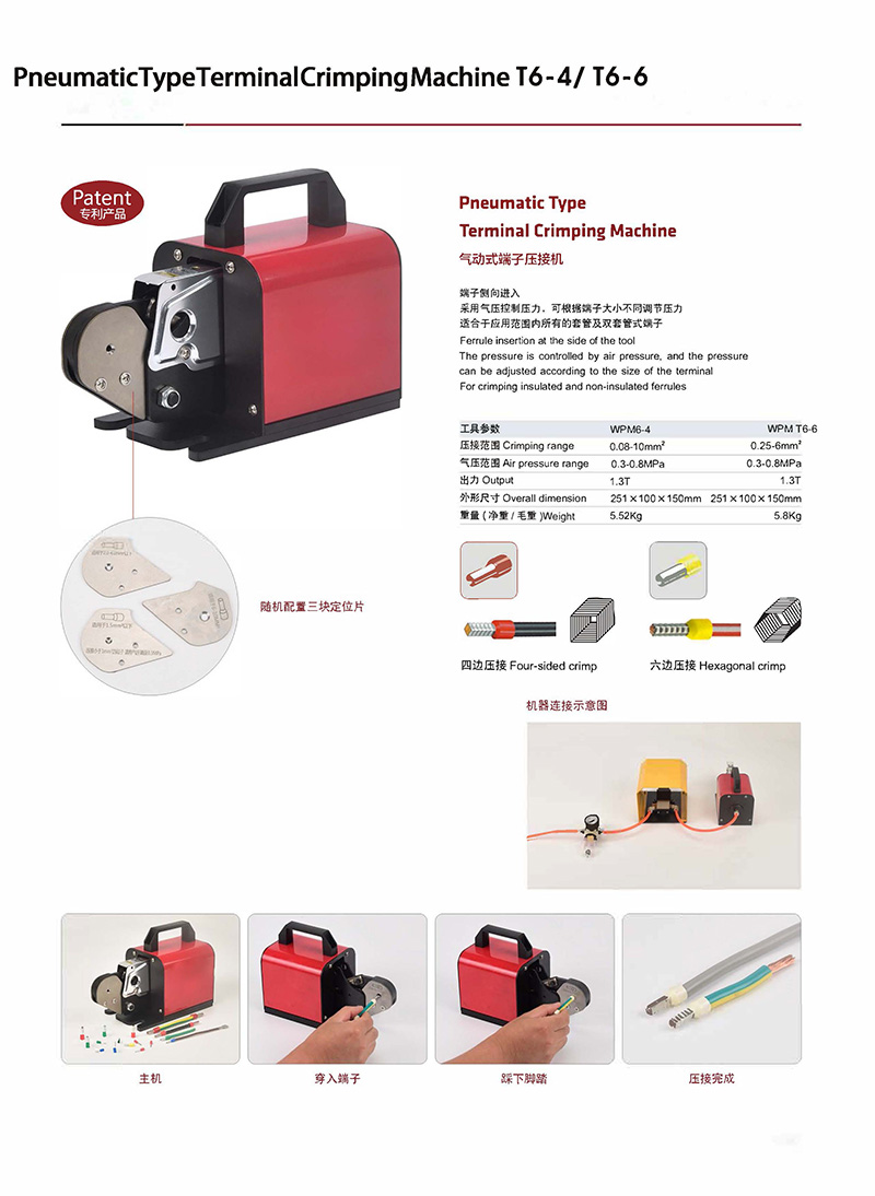 主な機能:管状端子圧着機、空気圧管状端子圧着機、六角形圧着